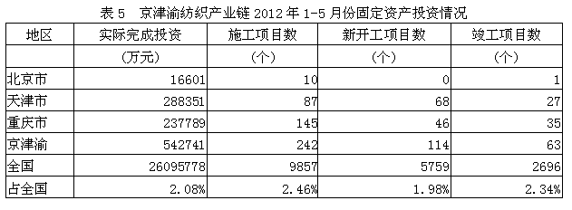 5京津渝紡織產(chǎn)業(yè)鏈固定資產(chǎn)投資情況