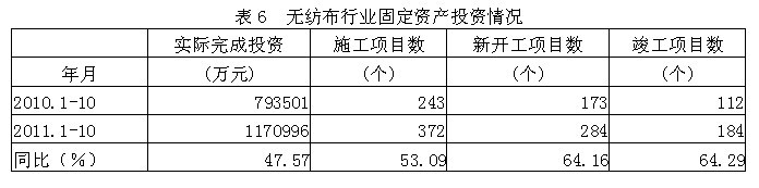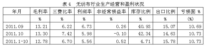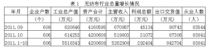 2011年1-10月無(wú)紡布行業(yè)經(jīng)濟(jì)運(yùn)行分析