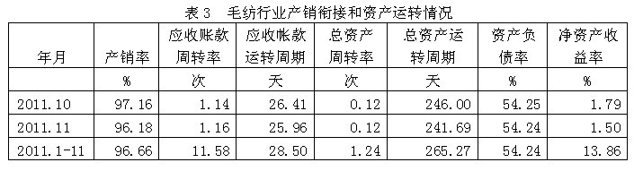 3毛紡行業(yè)產(chǎn)銷銜接和資產(chǎn)運轉(zhuǎn)情況