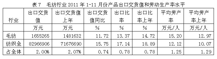 7毛紡行業(yè)產(chǎn)品出口交貨值和勞動生產(chǎn)率水平