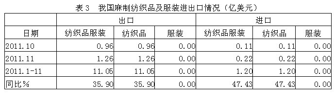 3麻制紡織品服裝進(jìn)出口情況