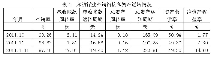4麻紡行業(yè)產(chǎn)銷(xiāo)銜接和資產(chǎn)運(yùn)轉(zhuǎn)情況