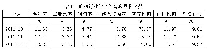 5麻紡行業(yè)生產(chǎn)經(jīng)營(yíng)和盈利狀況