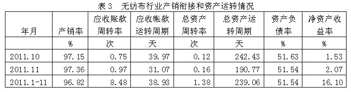 3無紡布行業(yè)產(chǎn)銷銜接和資產(chǎn)運轉(zhuǎn)情況
