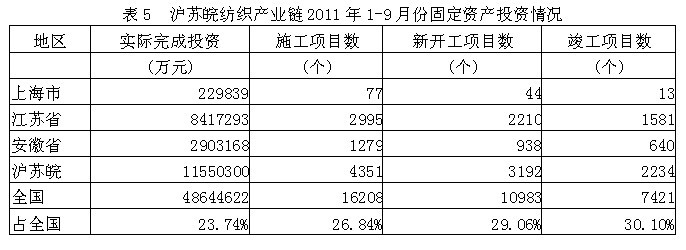 5滬蘇皖紡織產(chǎn)業(yè)鏈固定資產(chǎn)投資情況