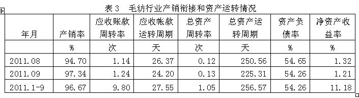 3毛紡行業(yè)產(chǎn)銷銜接和資產(chǎn)運(yùn)轉(zhuǎn)情況