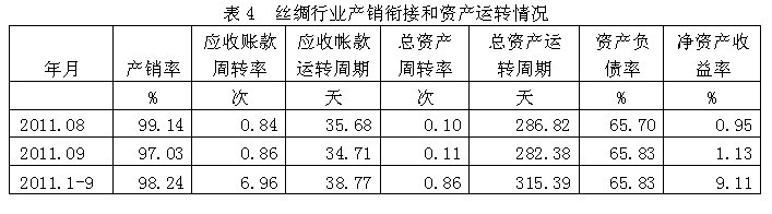 4絲綢行業(yè)產(chǎn)銷(xiāo)銜接和資產(chǎn)運(yùn)轉(zhuǎn)情況