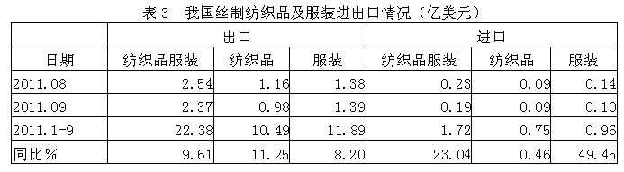 3絲制紡織品服裝進(jìn)出口情況