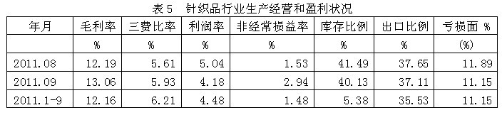 5針織品行業(yè)生產(chǎn)經(jīng)營和盈利狀況