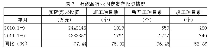 7針織品行業(yè)固定資產(chǎn)投資情況