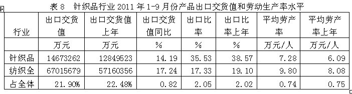 8針織品行業(yè)產(chǎn)品出口交貨值和勞動生產(chǎn)率水平