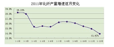 2011年,化纖行業(yè)產(chǎn)量、進(jìn)口、出口、開(kāi)工率、投資額、利潤(rùn)總額等主要指標(biāo)的增長(zhǎng)速度均呈現(xiàn)出前高后低逐漸減慢的走勢(shì),化纖各行業(yè)表現(xiàn)苦樂(lè)不均,主要產(chǎn)品市場(chǎng)價(jià)格也呈前高后低的走勢(shì),整體看起來(lái)有驚無(wú)險(xiǎn)。 行業(yè)整體呈現(xiàn)前高后低態(tài)勢(shì) 2011年,化纖行業(yè)產(chǎn)量、進(jìn)口、出口、開(kāi)工率、投資額、利潤(rùn)總額等主要指標(biāo)的增長(zhǎng)速度均呈現(xiàn)出前高后低逐漸減慢的走勢(shì),化纖主要產(chǎn)品市場(chǎng)價(jià)格也呈現(xiàn)前高后低的走勢(shì)。 產(chǎn)量。化纖產(chǎn)量增速上半年波動(dòng)明顯,下半年特別是8月份后出現(xiàn)持續(xù)回落,全年完成產(chǎn)量3362.36萬(wàn)噸,同比增長(zhǎng)13.87%,比1~2月份18.24%的增速下降4.37個(gè)百分點(diǎn)。