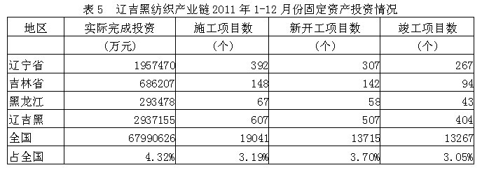 5遼吉黑紡織產(chǎn)業(yè)鏈固定資產(chǎn)投資情況