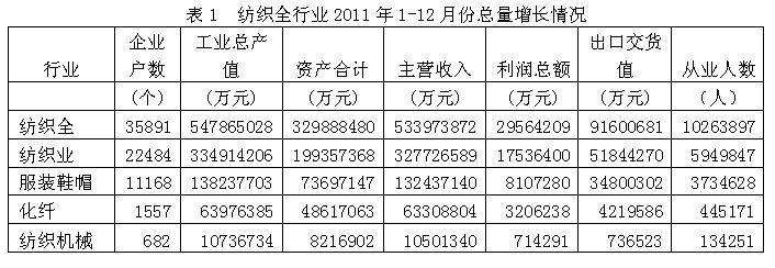 1紡織全行業(yè)總量增長情況