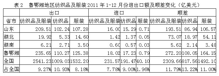 2魯鄂湘紡織品服裝進(jìn)出口變化
