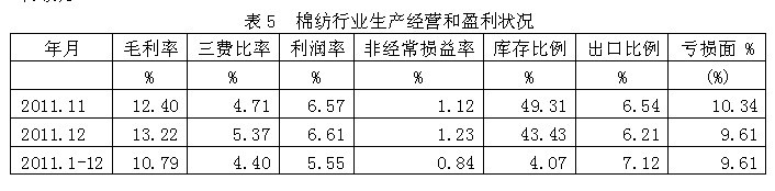 5棉紡行業(yè)生產(chǎn)經(jīng)營(yíng)和盈利狀況