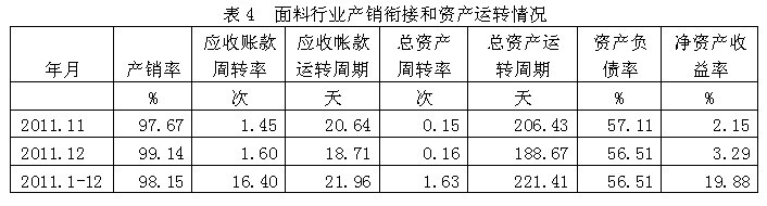 4面料行業(yè)產(chǎn)銷銜接和資產(chǎn)運(yùn)轉(zhuǎn)情況