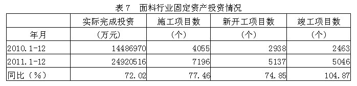 7面料行業(yè)固定資產(chǎn)投資情況