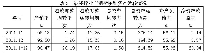 3紗線行業(yè)產(chǎn)銷銜接和資產(chǎn)運(yùn)轉(zhuǎn)情況