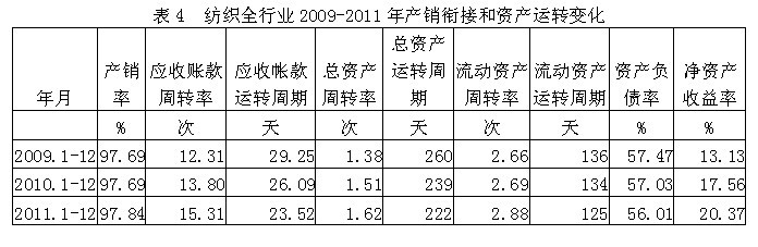 4紡織全行業(yè)產(chǎn)銷銜接和資產(chǎn)運轉(zhuǎn)情況
