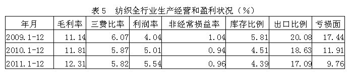 5紡織全行業(yè)生產(chǎn)經(jīng)營和盈利狀況