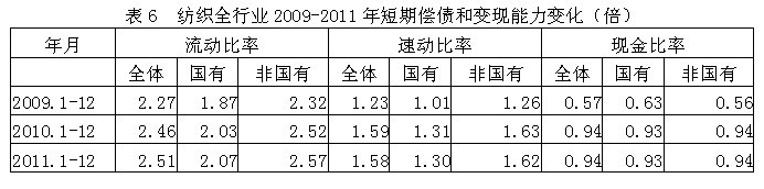6紡織全行業(yè)短期償債和變現(xiàn)能力變化
