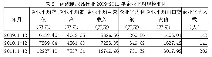 2紡織制成品企業(yè)平均規(guī)模變化情況