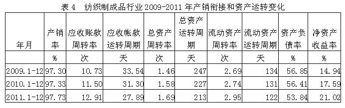 4紡織制成品行業(yè)產銷銜接和資產運轉情況