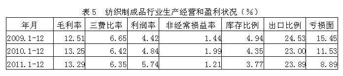 5紡織制成品行業(yè)生產經營和盈利狀況