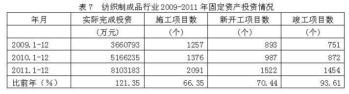7紡織制成品行業(yè)固定資產投資情況