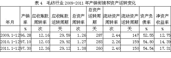 4 毛紡行業(yè)產(chǎn)銷銜接和資產(chǎn)運(yùn)轉(zhuǎn)情況