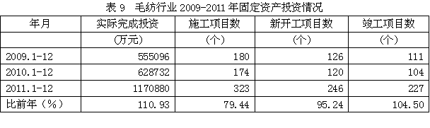 9 毛紡行業(yè)固定資產(chǎn)投資情況
