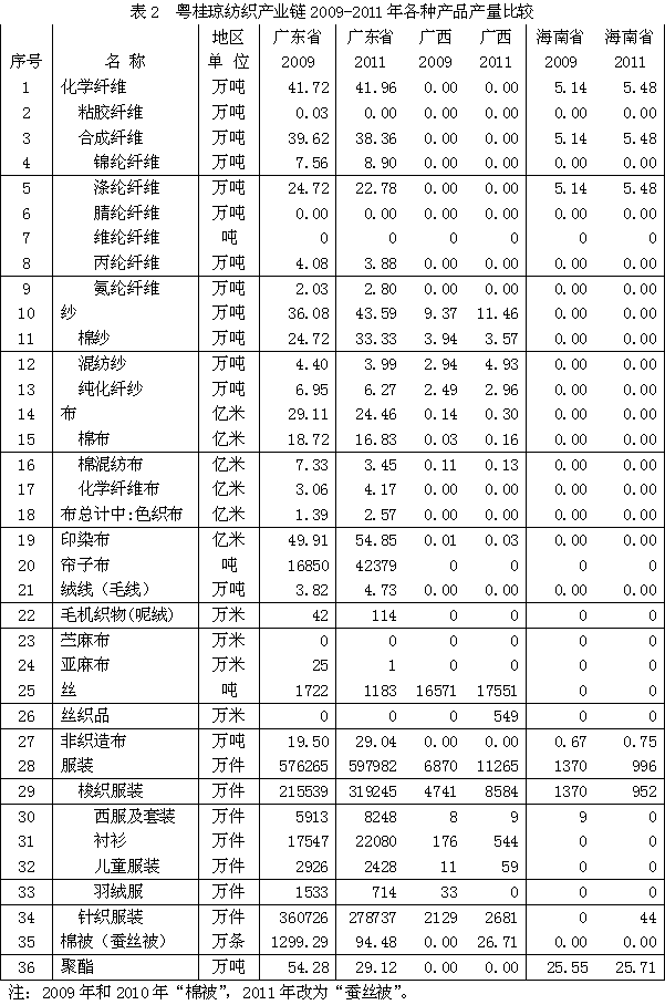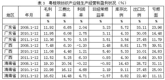 2009-2011年粵桂瓊紡織產(chǎn)業(yè)鏈經(jīng)濟(jì)運(yùn)行分析