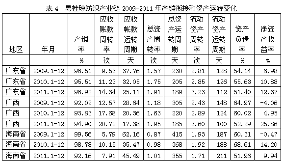 4 粵桂瓊紡織產(chǎn)業(yè)鏈產(chǎn)銷(xiāo)銜接和資產(chǎn)運(yùn)轉(zhuǎn)情況