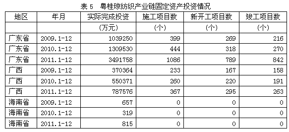 5 粵桂瓊紡織產(chǎn)業(yè)鏈固定資產(chǎn)投資情況