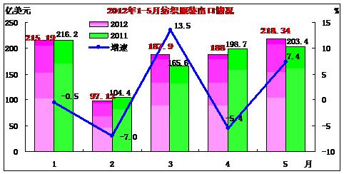 快訊:2012年5月紡織服裝出口增速回升