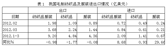 1毛制紡織服裝進(jìn)出口情況