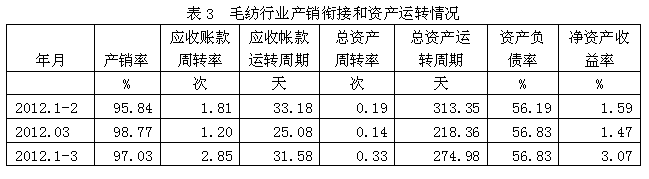 3毛紡行業(yè)產(chǎn)銷(xiāo)銜接和資產(chǎn)運(yùn)轉(zhuǎn)情況