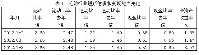 4毛紡行業(yè)短期償債和變現(xiàn)能力變化