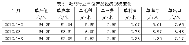 5毛紡行業(yè)單位產(chǎn)品經(jīng)濟(jì)規(guī)模變化