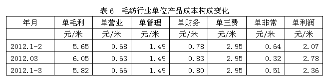 6毛紡行業(yè)單位產(chǎn)品成本構(gòu)成變化