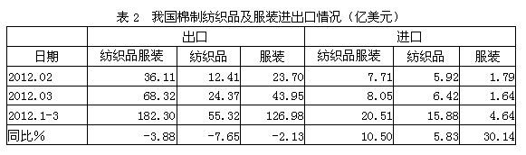 2棉制紡織品服裝進出口情況