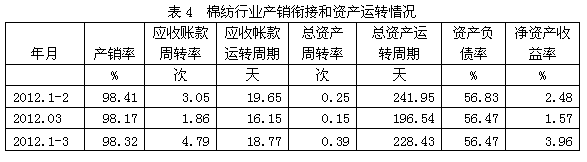 4棉紡行業(yè)產(chǎn)銷銜接和資產(chǎn)運轉(zhuǎn)情況