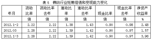 5棉紡行業(yè)短期償債和變現(xiàn)能力變化