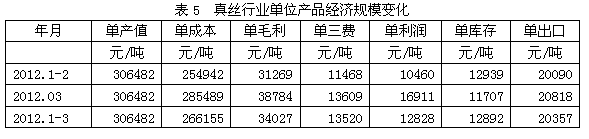 5 真絲行業(yè)單位產(chǎn)品經(jīng)濟(jì)規(guī)模變化