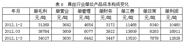 6 真絲行業(yè)單位產(chǎn)品成本構(gòu)成變化