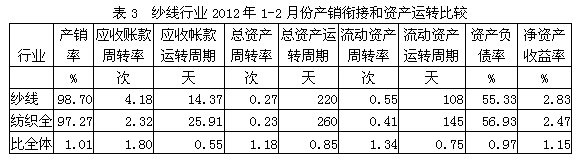 3紗線行業(yè)產(chǎn)銷銜接和資產(chǎn)運(yùn)轉(zhuǎn)情況