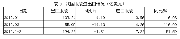 3服裝進(jìn)出口情況