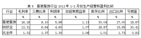 5服裝服飾行業(yè)生產(chǎn)經(jīng)營和盈利狀況
