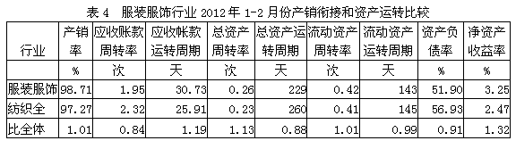 4服裝服飾行業(yè)產(chǎn)銷銜接和資產(chǎn)運(yùn)轉(zhuǎn)情況